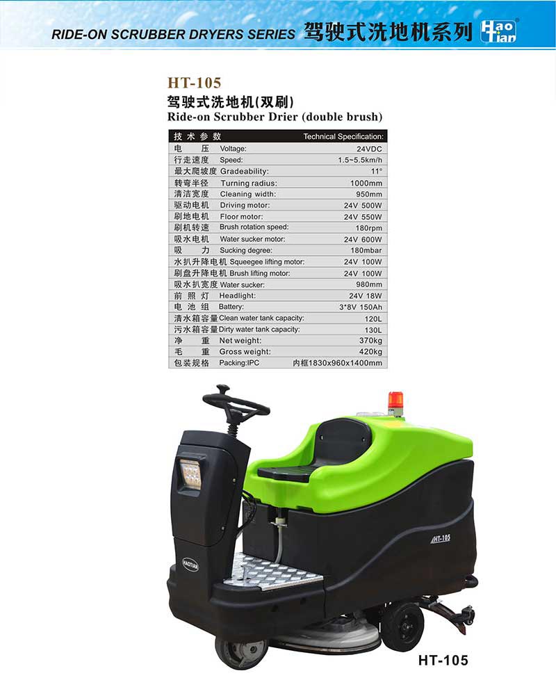 HT-105駕駛式洗滌劑(雙刷) 主頁>>洗地機>HT-105駕駛式洗滌劑(雙刷)>